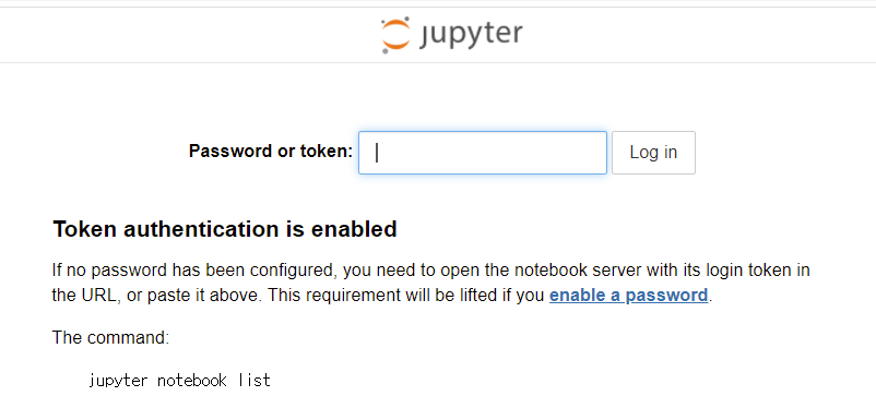 외부 접속 허용 설정 후 주소를 통해 들어갔을 때 token을 입력하라고 합니다.