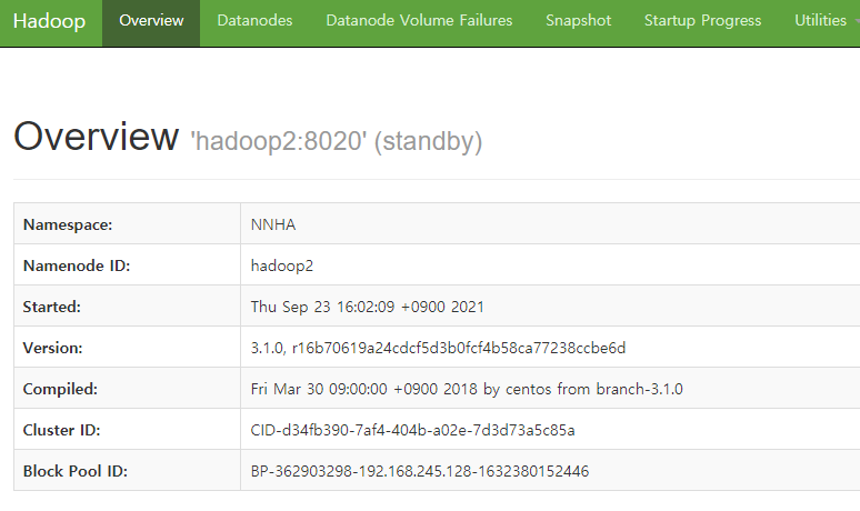 # hadoop2의 네임노드(스탠바이 네임노드) 종료