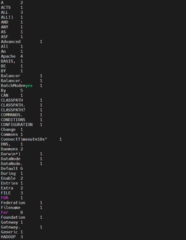 # wordcount 결과 확인 ( 파일의 단어 갯수 )