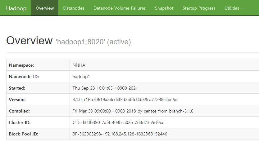 # hadoop1의 네임노드(액티브 네임노드) 종료