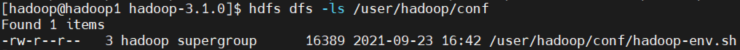 hdfs dfs -put /home/hadoop/hadoop-3.1.0/etc/hadoop/hadoop-env.sh /user/hadoop/conf/