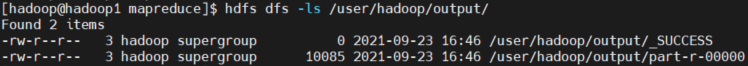 hdfs dfs -cat /user/hadoop/output/part-r-00000