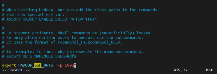 예를 들어, hadoop 과 관련 된 서버들이 ssh port를 1002를 쓴다고 하면, 위 사진과 같이 내용을 추가합니다.